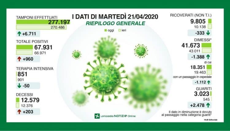 Milano, 21 Aprile 2020 – Le due infografiche messe a disposizione dalla Regione Lombardia illustrano quanto detto ed esaminato in conferenza stampa durante la diretta Facebook delle 18:30.