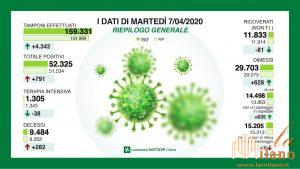 Milano, 07 Aprile 2020 – La slide con i dati regionali sul contagio da coronavirus presentati in conferenza stampa dall’assessore al Welfare, Giulio Gallera che ha, poi, sottolineato come tutti gli indicatori siano positivi invitando tutti ad un ultimo grande sforzo.