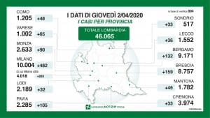 Milano, 02 Aprile 2020 – La slide riporta i dati per provincia presentati dal vicepresidente della Regione Lombardia.