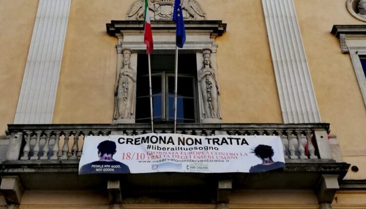 A Cremona, a partire da oggi, venerdì 15 ottobre, resterà esposto sulla facciata di Palazzo Ala Ponzone, in corso Vittorio Emanuele II, un grande striscione recante la scritta CREMONA NON TRATTA accompagnata dallo slogan #liberailtuosogno. Un’iniziativa di sensibilizzazione promossa all’interno di “Mettiamo le ali 2.0 – Dall’emersione all’integrazione”, progetto sovra provinciale finanziato dal Dipartimento per le Pari Opportunità per la realizzazione di programmi di emersione, assistenza e integrazione sociale a favore di vittime di tratta e grave sfruttamento che intendano sottrarsi alla violenza e ai condizionamenti di soggetti dediti al traffico di persone.
