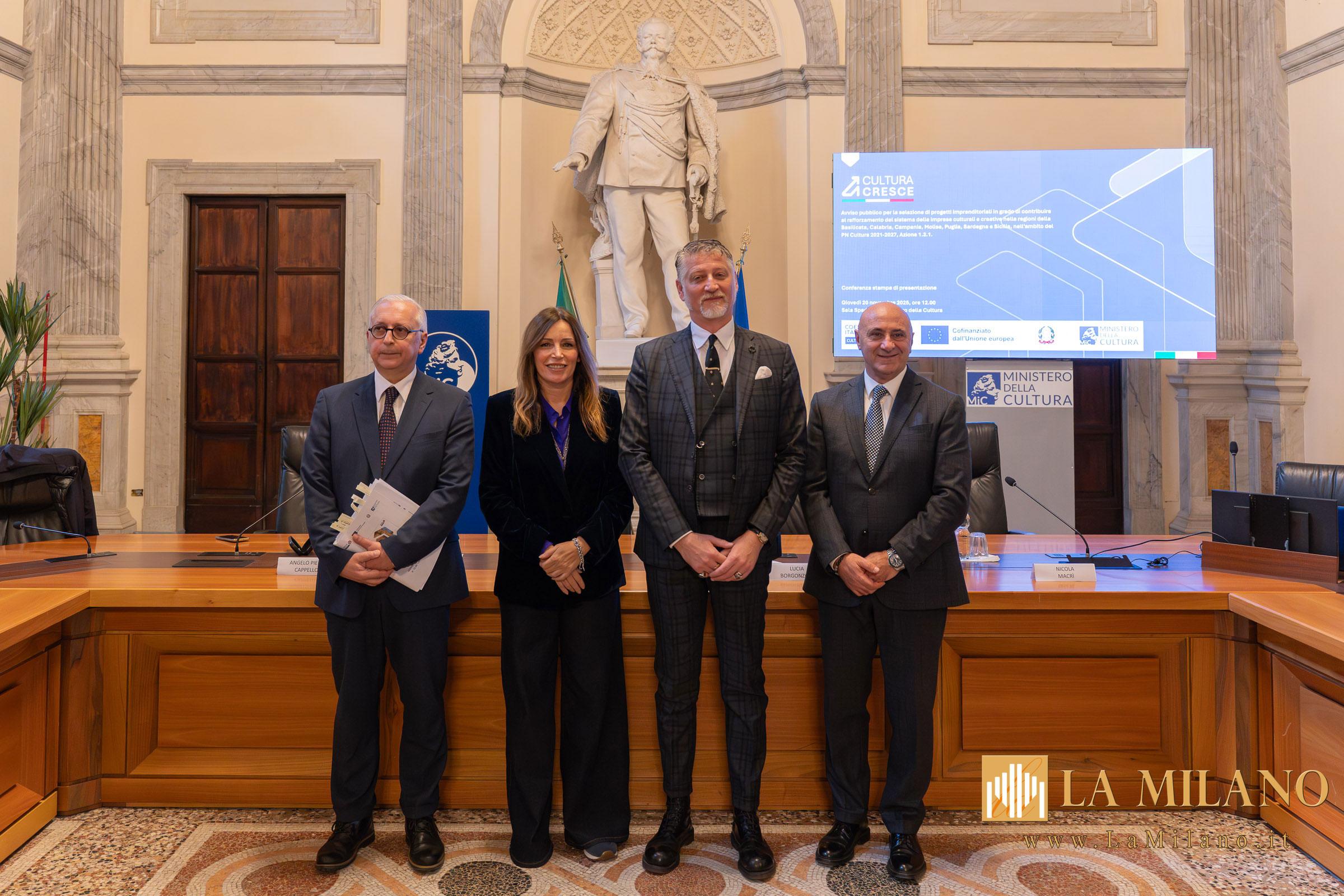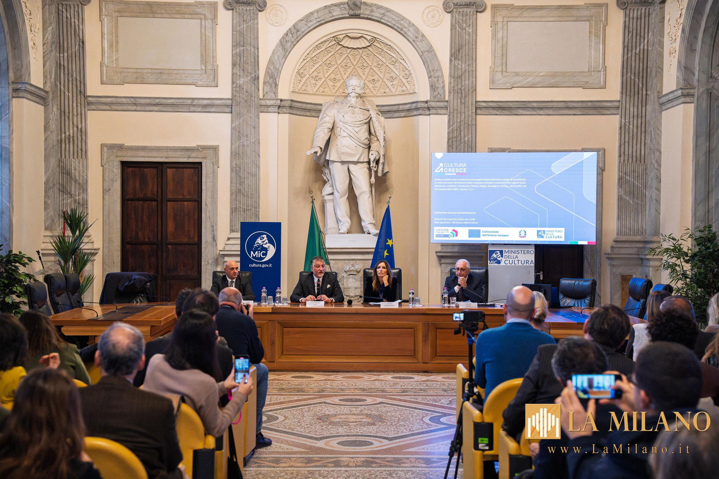 La presentazione ufficiale si è svolta nella Sala Spadolini del Collegio Romano, con la partecipazione del Ministro della Cultura Alessandro Giuli, del Sottosegretario alla Cultura Lucia Borgonzoni, del Direttore Generale Angelo Piero Cappello e di Nicola Macrì, Autorità di Gestione del Programma Nazionale Cultura.