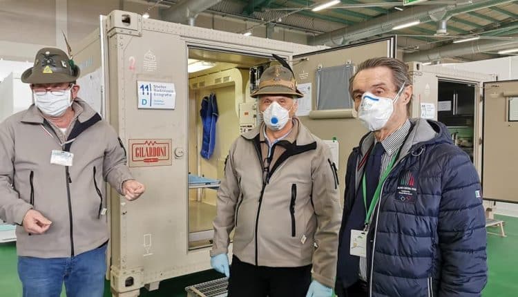 Bergamo, 01 Aprile 2020 – Il presidente di Regione Lombardia Attilio Fontana ha effettuato oggi a Bergamo, insieme all’assessore regionale alla Protezione civile, Pietro Foroni, un ultimo sopralluogo all’Ospedale da campo dell’Associazione nazionale Alpini, ormai giunto alle fasi finali di allestimento al padiglione B della Fiera.