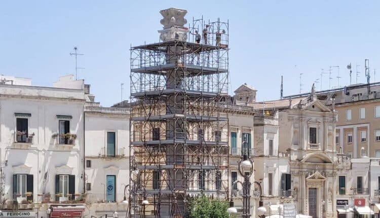 Lecce, sono terminati i lavori di restauro conservativo della colonna di Piazza Sant’Oronzo. Lo smontaggio delle impalcature è cominciato questa mattina e sarà completato in pochi giorni, restituendo alla città la vista di uno dei beni monumentali caratterizzanti la piazza principale. Gli interventi di ripulitura, consolidamento e i trattamenti protettivi sono stati realizzati dalla ditta “Emilio Colaci impianti e restauri”.