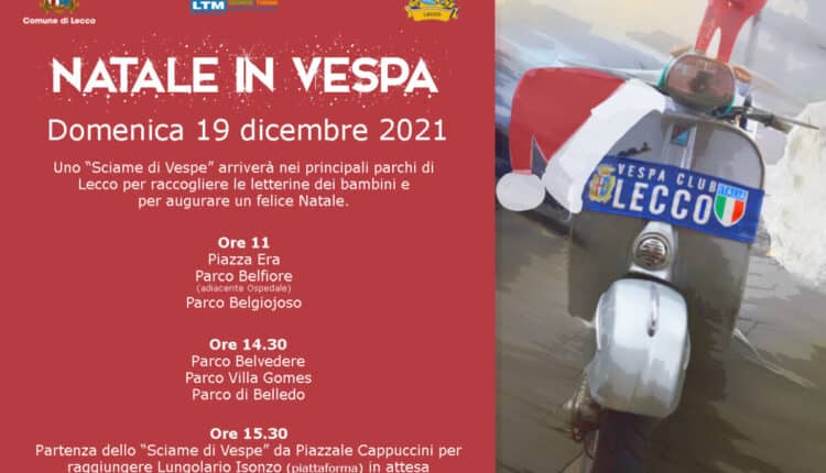 Lecco, l’attesa del Natale a Lecco si arricchisce di un’ulteriore nuova iniziativa proposta dal Comune di Lecco in collaborazione con il Vespa Club Lecco e LTM: domenica 19 dicembre un vero e proprio “Sciame di Vespe”, guidate da un gruppo di “Babbi Natale”, farà tappa nei principali parchi della città per raccogliere le letterine scritte dai bambini delle scuole dell’infanzia e primarie di primo grado di Lecco e per uno scambio di auguri con le famiglie.