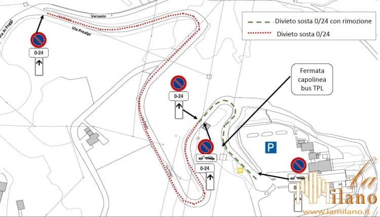 Istituito il divieto di sosta permanente lungo ambo i lati di via Prealpi, nel tratto compreso tra via ai Poggi e l’ultimo tornante, nonchè il divieto di sosta con rimozione forzata dei veicoli su ambo i lati dall’ultimo tornante fino al parcheggio della funivia per i Piani d’Erna.