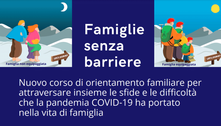 La prima iniziativa dal titolo Famiglie senza barriere, corso di orientamento familiare, inizierà in modalità telematica domenica 23 maggio e si terrà dalle 17.30 alle 18.30 nelle seguenti date: 23 maggio, 20 giugno, 19 settembre, 17 ottobre, 21 novembre, 12 dicembre 2021.Il percorso si articola in incontri di gruppo composti da 10-15 genitori. A ogni incontro, attraverso domande-guida proposte dai coordinatori, si tratterà uno specifico tema: la casa e la vita di famiglia, l’educazione dei figli, scuola e studio, tempo libero e tecnologia, libertà e responsabilità, famiglia e lavoro. L’obiettivo è condividere il proprio punto di vista e alla fine lasciare tempo per elaborare singolarmente un “piano d’azione” in relazione alla propria situazione.
