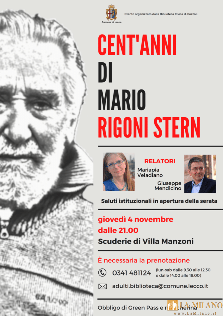 L’evento si terrà giovedì 4 novembre dalle ore 21 nelle scuderie di Villa Manzoni. La partecipazione è gratuita, richiede il possesso della certificazione verde in corso di validità e l’utilizzo della mascherina. Per accedere è necessaria la prenotazione, effettuabile telefonando al numero 0341 481124 dal lunedì al sabato dalle 9.30 alle 12.30 e dalle 14 alle 18, oppure scrivendo ad adulti.biblioteca@comune.lecco.it.