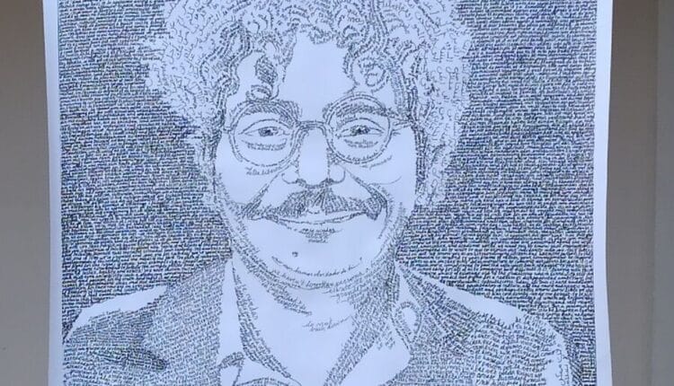 Lecco, il Comune aderisce all’iniziativa “Una luce per Patrick”, promossa da ALI (Autonomie Locali Italiane) e supportata da oltre mille comuni italiani che hanno scelto di illuminarsi per Zaki a quindici mesi dall’inizio della sua sua detenzione in Egitto [nella foto il “Ritratto di parole dedicato a Patrick Zaki” realizzato dall’artista Francesca Grosso in Calligraphy Art ed esposto in municipio a febbraio].