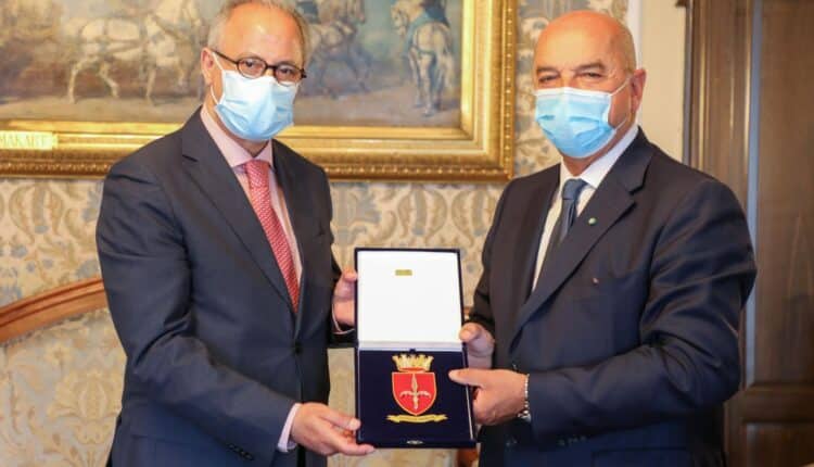 Un messaggio condiviso e apprezzato dal primo cittadino che in segno di stima e amicizia ha consegnato all’ambasciatore Balla lo stemma ufficiale, con l’alabarda dorata su campo rosso, della città di Trieste.