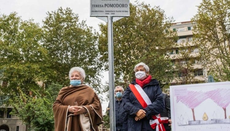 Attrice, regista, drammaturga, Teresa Pomodoro è stata la fondatrice nel 1994 del Teatro No’hma, che dal 2000 ha sede in via Orcagna 2 nel cuore del Municipio 3, a pochi passi dal giardino a lei dedicato.