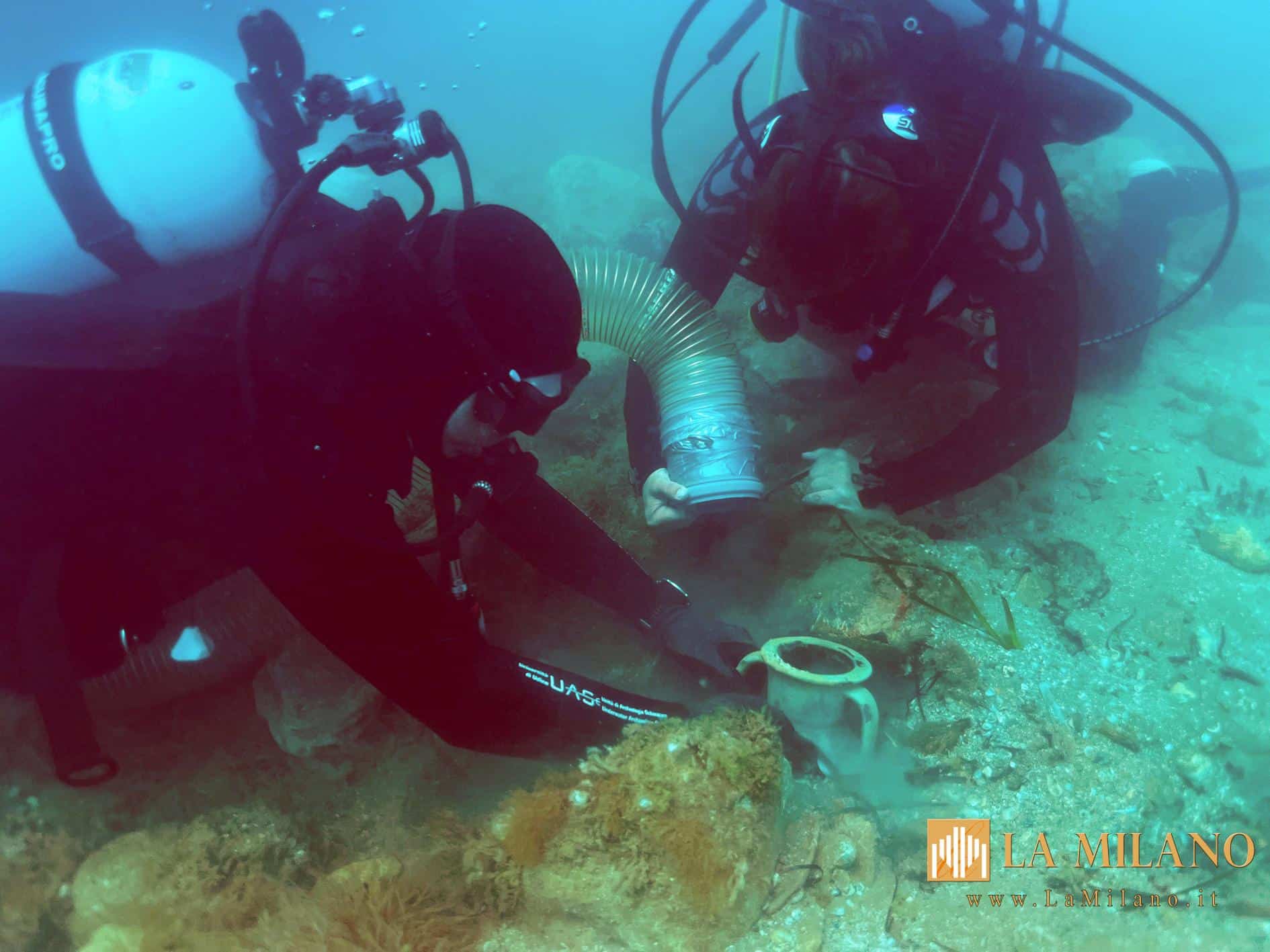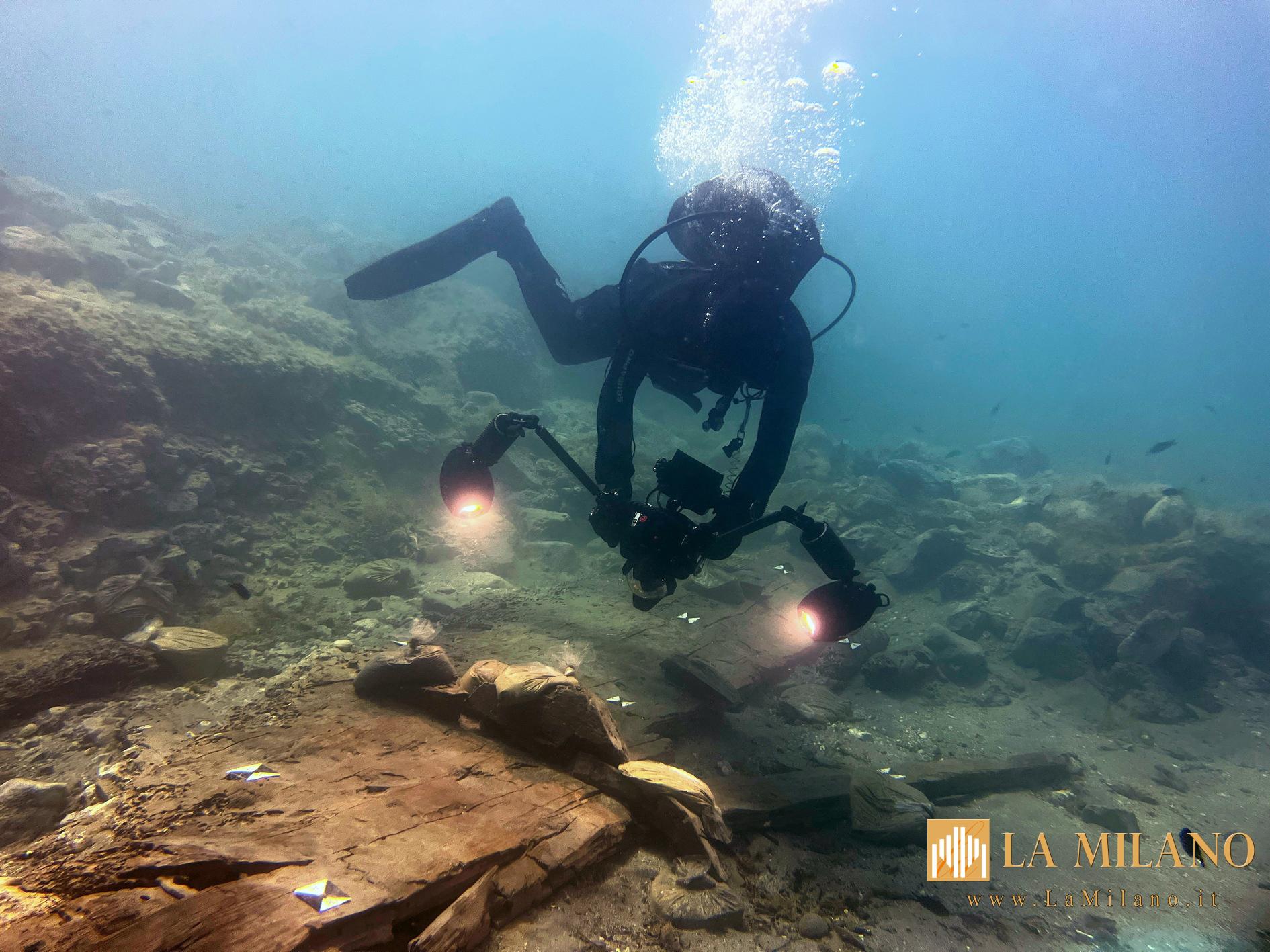 Oltre alla struttura della nave, le ricerche hanno permesso di recuperare l’albero, ceramiche a figure nere, un piccolo unguentario con incisa in lingua greca la parola “Nau” (nave) e un pezzo di cima utilizzata a bordo dell’imbarcazione, in eccezionale stato di conservazione. I resti della nave, inizialmente sepolti da uno strato frammisto di sabbia e massi, sono stati portati parzialmente alla luce a partire dal 2024. La nuova campagna ha permesso, grazie all’utilizzo di una sorbona ad acqua, di avanzare di circa due metri allargando la trincea di scavo fino al totale esaurimento del deposito.