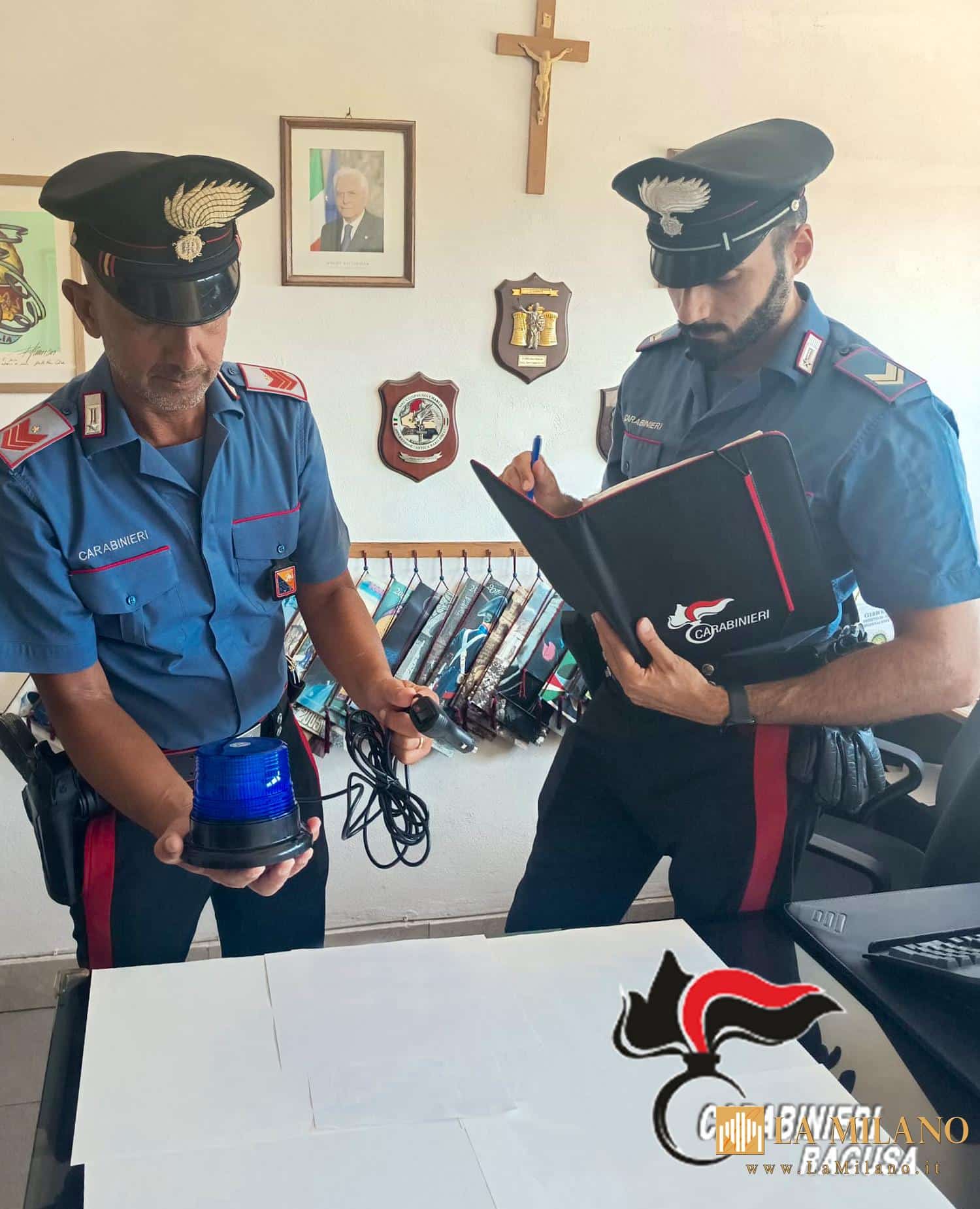 Nell’ambito dei controlli del territorio – che verranno ancor più intensificati nei weekend di tutto il periodo estivo – espletati dai militari della Compagnia di Modica, è stato denunciato all’Autorità Giudiziaria dalla Stazione Carabinieri di Donnalucata un 20enne del posto incensurato per “possesso di segni distintivi contraffatti”. Il giovane veniva notato dai militari in perlustrazione a bordo di un’autovettura con installato sopra il tetto un lampeggiante in funzione di colore blu che, di norma, identifica i mezzi in uso alle forze dell’ordine o di emergenza. Il conducente si assumeva la responsabilità, giustificando il gesto come goliardico. Il dispositivo veniva posto sotto sequestro.