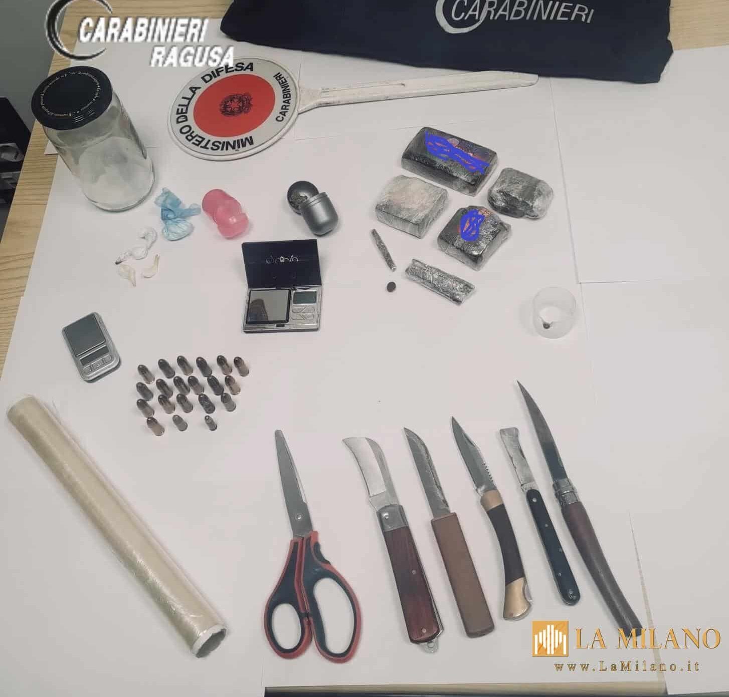 Scicli, blitz antidroga dei Carabinieri: arrestato 40enne con hashish, cocaina e munizioni illegali