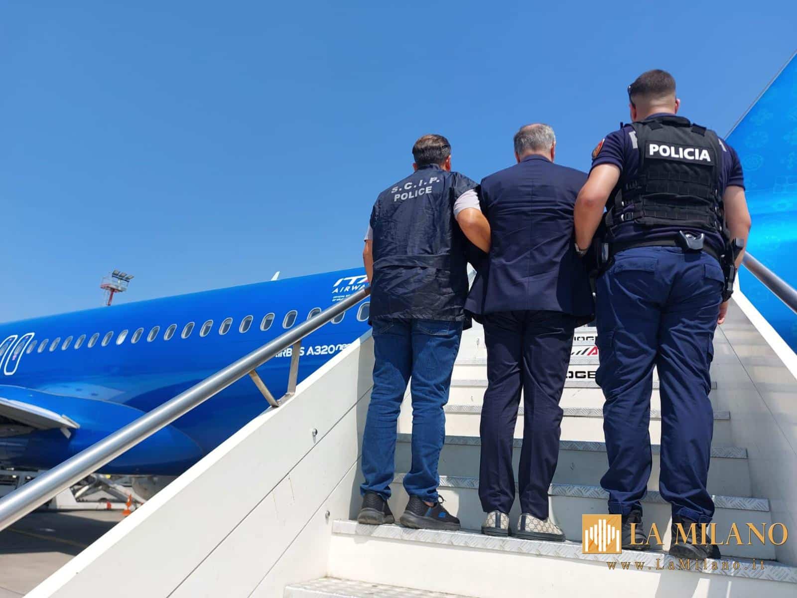 In esecuzione di un provvedimento di estradizione verso l’Italia, a seguito di indagini condotte dalla Polizia di Stato, è atterrato presso l’aeroporto di Fiumicino (RM), proveniente da Tirana (Albania), scortato dal Servizio per la Cooperazione Internazionale di Polizia del Dipartimento della Pubblica Sicurezza, un latitante albanese, cinquantaseienne, che dovrà scontare la pena definitiva di 25 anni di reclusione, in virtù di un provvedimento emesso dalla Procura Generale presso la Corte di Appello di Salerno, per sequestro di persona, tentata estorsione, lesioni personali, detenzione illegale di armi ed associazione finalizzata al traffico di sostanze stupefacenti.