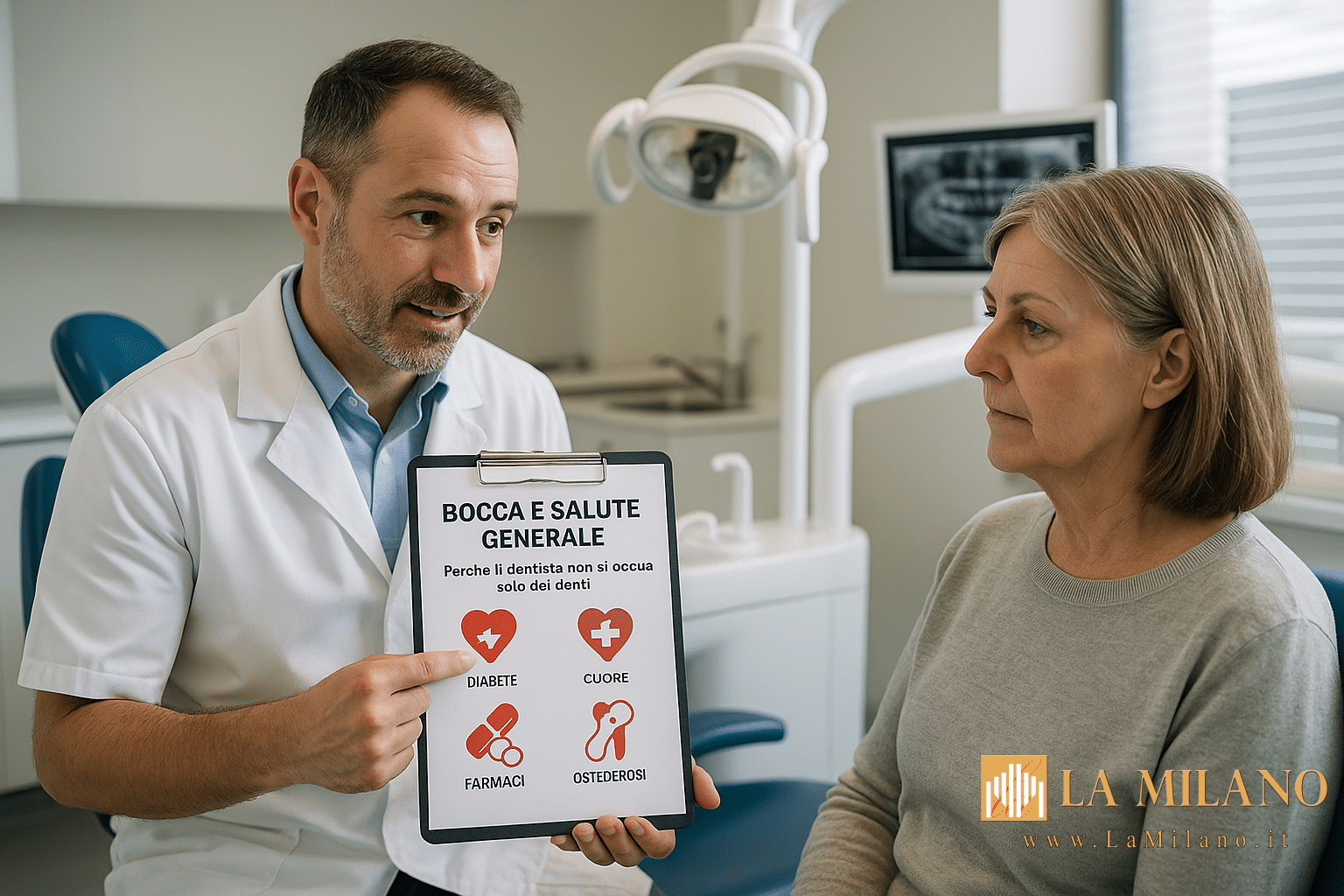 Quando pensiamo al dentista, di solito ci vengono in mente carie, otturazioni e poco altro. In realtà la bocca è parte del corpo, non un “pezzo a parte”, e molte malattie generali hanno effetti diretti su gengive, denti, impianti e osso mascellare.