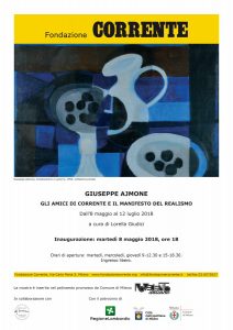 La mostra Giuseppe Ajmone. Gli amici di Corrente e il Manifesto del Realismo. L’esposizione è visitabile da martedì 8 maggio a giovedì 12 luglio 2018 presso la Fondazione Corrente, via Carlo Porta, 5.