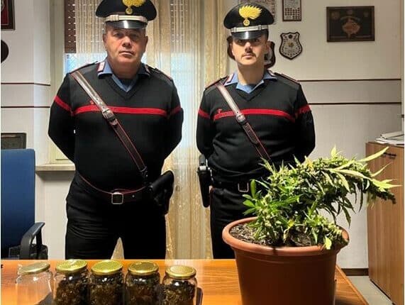 A quel punto, è stata effettuata una perquisizione della casa, trovando alcuni vasetti di vetro contenenti circa 200 grammi di marijuana.