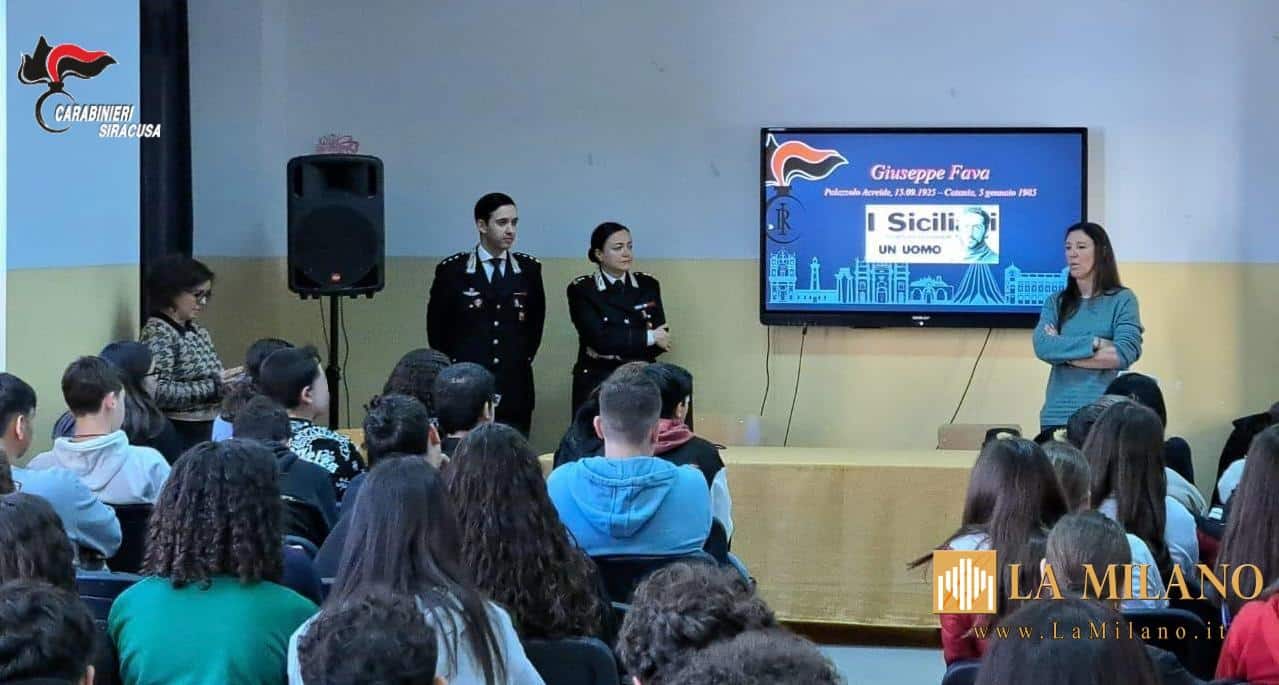 A Palazzolo Acreide, presso l’Istituto Comprensivo “V.Messina”, l’Arma dei Carabinieri, in collaborazione con la Fondazione “Vittorio Occorsio”, nell’ambito del progetto dal titolo “La giustizia adotta la scuola” ha incontrato gli studenti delle classi terze per parlare della figura di Giuseppe Fava, giornalista professionista originario di Palazzolo Acreide, ucciso dalla mafia il 5 gennaio del 1984 a Catania dopo avere denunciato le attività di cosa nostra nel capoluogo etneo, in particolare dalle pagine della rivista da lui fondata “I Siciliani”.