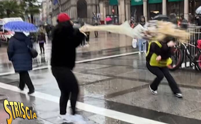 Striscia la Notizia, Staffelli colpito con la spazzatura dalle borseggiatrici: “Rubiamo a tutti!”.
