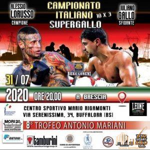 Classe 1996, il brianzolo Lorusso è uno dei volti più conosciuti del pugilato italiano, e non solo per il fitto mosaico di tatuaggi che ne coprono ogni angolo del corpo. Forte di un record di dieci vittorie (la metà per k.o.), quattro sconfitte e due pareggi, “Mosquito”, così chiamato per la rapidità dei suoi movimenti del ring, si è laureato campione italiano nella categoria lo scorso novembre a Sarnico e ora si presenta a Buffalora con l’obiettivo di conservare la cintura dalle mire dello sfidante: quel Iuliano Gallo, classe 1992, calabrese di nascita ma di stanza a Varese ormai da tanti anni, che lontano dal ring da più di un anno vuole riscattare l’ultima sconfitta che lo ha privato del titolo supergallo dell’Unione Europea legando in vita quella tricolore.