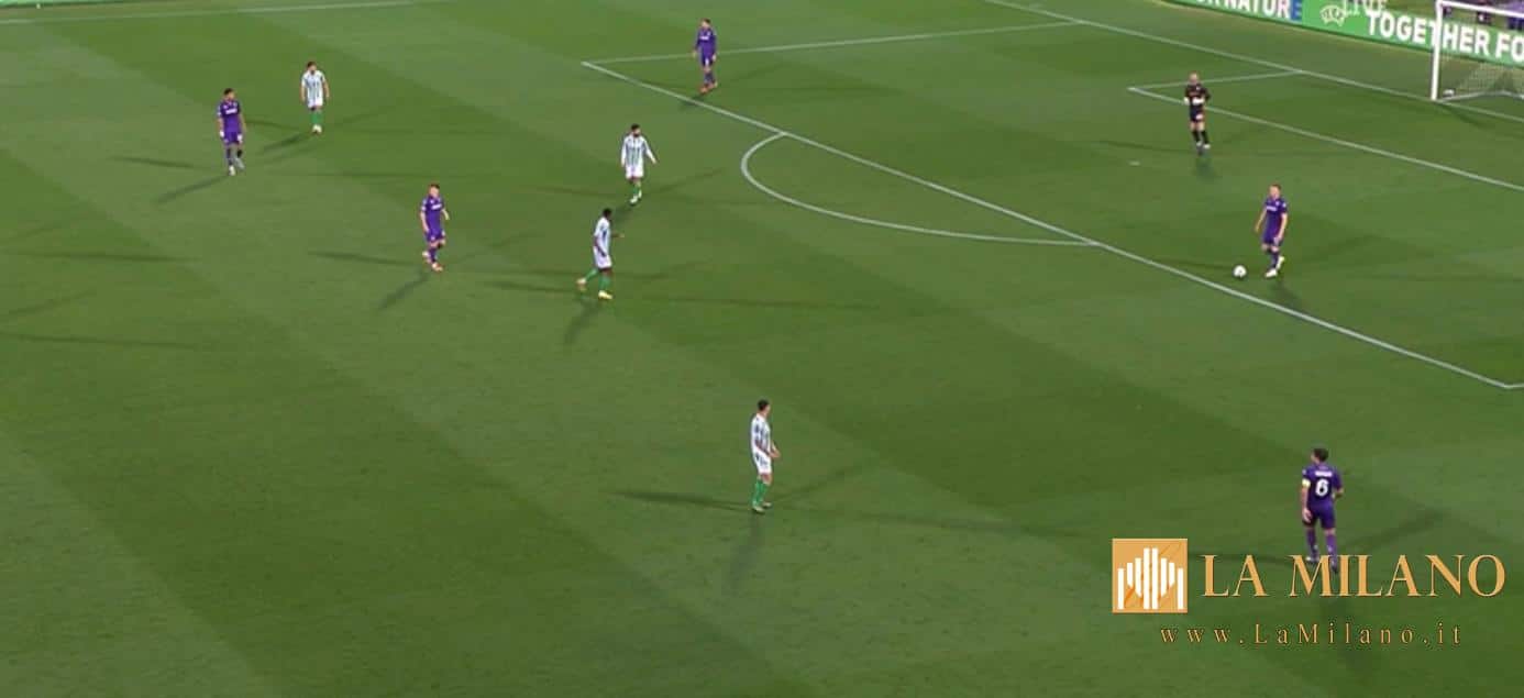 Nel primo tempo partono meglio gli spagnoli. All’11’ un tiro-cross di Fornals diventa insidioso e De Gea è costretto a deviare lateralmente. Al 20′ risponde la Fiorentina con Kean che calcia alto dopo aver saltato un paio di avversari. Al 22′ Antony cerca l’angolino da dentro l’area, De Gea si allunga e respinge. Il portiere viola però non può nulla al 30′, quando lo stesso Antony trasforma un gran calcio di punizione per lo 0-1. La risposta dei viola è immediata; al 34′ Gosens insacca di testa sugli sviluppi di un corner e realizza l’1-1. Al 41′ il Betis sfiora il vantaggio con il tiro di Cardoso che centra in pieno la traversa. Un minuto dopo il vantaggio arriva, ma è per la Fiorentina; rete fotocopia della prima, con il solito Gosens che anticipa tutti di testa e firma il 2-1. Parità ristabilita nel parziale complessivo tra andata e ritorno.