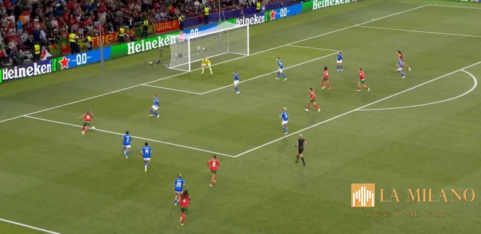 Le azzurre rischiano grosso nel finale, quando Diana Silva firma il momentaneo pareggio: l’arbitro, però, annulla la rete per fuorigioco. La gioia è però solo rimandata per le portoghesi, che all’89’ trovano il gol dell’1-1 con Diana Gomes, brava a superare Giuliani con un pallonetto.