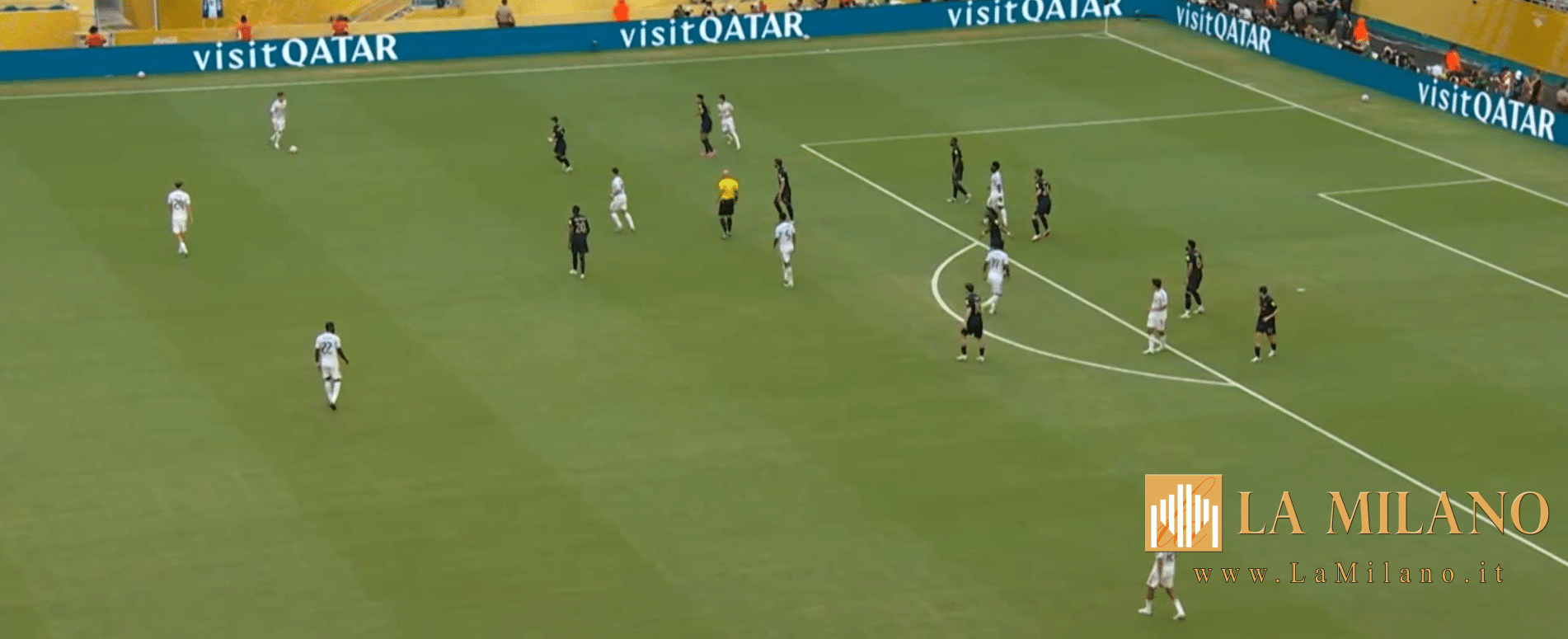 Nel primo tempo sono i bianconeri i primi ad andare vicini al vantaggio. Al 7′ Yildiz inventa per Kolo Muani che solo davanti a Courtois prova un pallonetto, ma il tentativo del francese termina alto. Al 22′ Conceicao colpisce di testa da centro area senza impensierire il portiere dei blancos. Con il passare dei minuti il Real alza l’intensità andando vicini alla rete in due occasioni. Al minuto 29 Bellingham si inserisce alla grande e prova la zampata, Di Gregorio attento respinge e Rugani allontana dalla linea di porta. All’ultimo minuto Valverde conclude dalla distanza e Di Gregorio devia in angolo il pallone indirizzato a fil di palo con un super intervento.