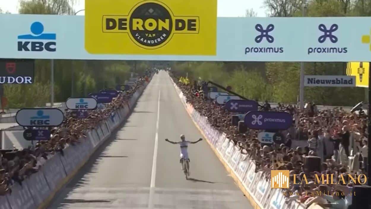 Tadej Pogacar vince da fuoriclasse il Giro delle Fiandre 2025. Sul podio Pedersen secondo e Van der Poel terzo. Per quanto riguarda gli azzurri, Ganna chiude ottavo, mentre Ballerini decimo.