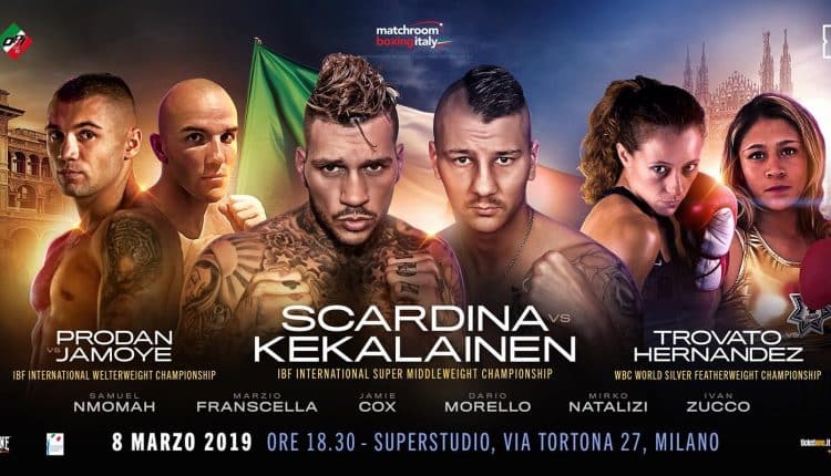 I biglietti per la manifestazione dell’8 marzo, al Superstudio Più, in Via Tortona 27 a Milano, sono in vendita su TicketOne.it. I prezzi (prevendita inclusa) sono 55 Euro per il bordo ring, 39 Euro per il parterre e 28 Euro per la platea. I biglietti sono in vendita anche alla Opi Gym in Corso di Porta Romana 116/A a Milano, telefono 02-89452029. Altri due combattimenti hanno un titolo in palio: Maxim Prodan (15-0 con 14 ko) sfiderà il belga Steve Jamoye (25-6-2) per il vacante titolo internazionale dei pesi welter IBF, mentre Vissia Trovato (12-1) affronterà la messicana Erika Cruz Hernandez (9-1) per il vacante titolo silver dei pesi piuma WBC. Saliranno sul ring anche Dario Morello, Mirko Natalizi (3-0, 2 KO), lo svizzero Marzio Franscella (6-0), Samuel Nmomah (9-0, 3 KO) ed il britannico Jamie Cox (25-2, 14 KO).