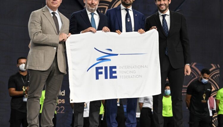 È iniziato il viaggio verso il Mondiale assoluto di scherma Milano 2023. Questo pomeriggio, al Cairo International Stadium Complex, è stata consegnata alla delegazione italiana la bandiera della FIE, la Federazione internazionale di scherma. Il passaggio di testimone dall’Egitto all’Italia si è tenuto nel corso di una cerimonia ufficiale, durante l’ultima giornata del Campionato del Mondo 2022, che si è svolto in questi giorni al Cairo.