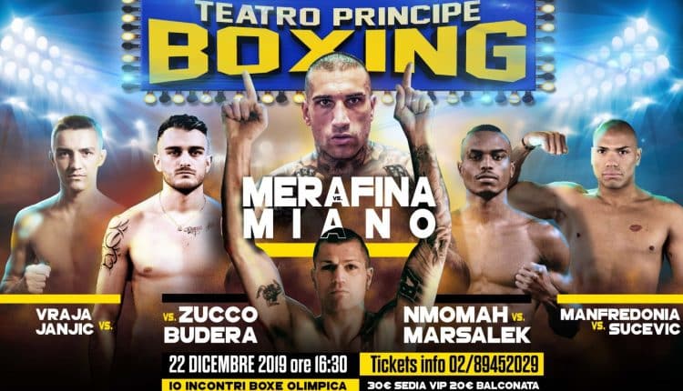 Domenica 22 dicembre, torna la boxe al teatro Principe di Milano con una riunione organizzata dalla Opi Since 82 in collaborazione con la società Rocky Marciano. Nel clou, il peso supermedio milanese Riccardo Merafina (6-0 con 3 vittorie prima del limite) affronterà Marco Miano (7-15) sulla distanza delle 6 riprese. Con questa riunione gli organizzatori vogliono celebrare il quinto anniversario del ritorno della nobile arte al teatro Principe. La prima manifestazione organizzata da Salvatore Cherchi e dai figli Alessandro e Christian nel teatro di Viale Bligny 52 risale al 5 dicembre 2014 ed era imperniata sul titolo italiano dei pesi welter tra Antonio Moscatiello (campione) e Riccardo Pintaudi. Vinse Moscatiello per knock out tecnico al decimo round. A quella riunione ne sono seguite una trentina che hanno fatto rinascere nei milanesi la passione per il pugilato. E’ grazie a quel lavoro di sviluppo dei pugili locali attraverso una serie di eventi in un impianto storico, in pieno centro, con una costante copertura mediatica ed a volte con la diretta televisiva che la famiglia Cherchi ha posto le basi per siglare l’accordo con la Matchroom Boxing di Eddie Hearn e con il servizio streaming DAZN cha ha portato ad organizzare otto grandi manifestazioni tra il novembre 2018 e il novembre 2019 che hanno avuto una costante crescita in termini di spettatori. Anche la riunione di domenica 22 dicembre ha le carte in regola per avere successo di pubblico: Riccardo Merafina è molto popolare a Milano e per questo gran parte dei biglietti sono stati venduti. Marco Miano viene da una serie di sconfitte, ma è un pugile che non deve essere preso alla leggera. Il pubblico del teatro Principe si ricorda di quando diede filo da torcere al forte rumeno Catalin Paraschiveanu il 21 luglio 2016. Miano perse ai punti dopo 8 spettacolari riprese e ricevette gli applausi degli appassionati. Marco Miano viene spesso ingaggiato all’estero e quindi ha un’esperienza internazionale che manca a Riccardo Merafina. In definitiva, i presupposti per assistere ad una bella sfida ci sono tutti.