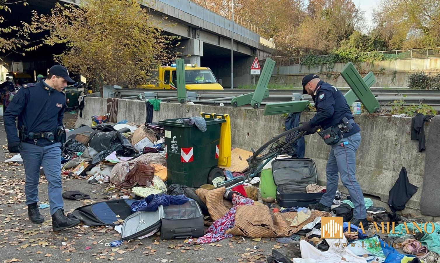 Questa mattina, l’operazione interforze si è concentrata nel sottopasso tra corso Venezia e corso Grosseto, noto come “il buco”, area segnalata da settimane per una condizione di forte degrado urbano dovuta alla presenza di baracche e giacigli di fortuna.