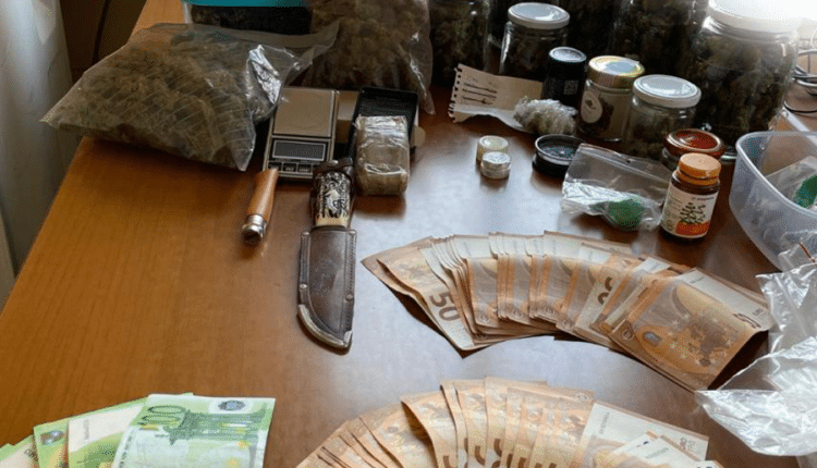 Attraverso servizi di osservazione ed approfonditi accertamenti si giungeva all’identificazione ed all’esatta ubicazione del domicilio che veniva sottoposto pertanto a perquisizione, consentendo il rinvenimento ed il sequestro di gr. 9,8757 di cocaina, Kg. 1 e gr. 376,7468 di marijuana, gr. 126,2 di hashish ed una compressa di MDMA, nonché materiale idoneo al confezionamento, due bilancini di precisione e n. 2 coltelli con evidenti tracce di hashish, nonché la somma in contanti pari ad euro 4.850.