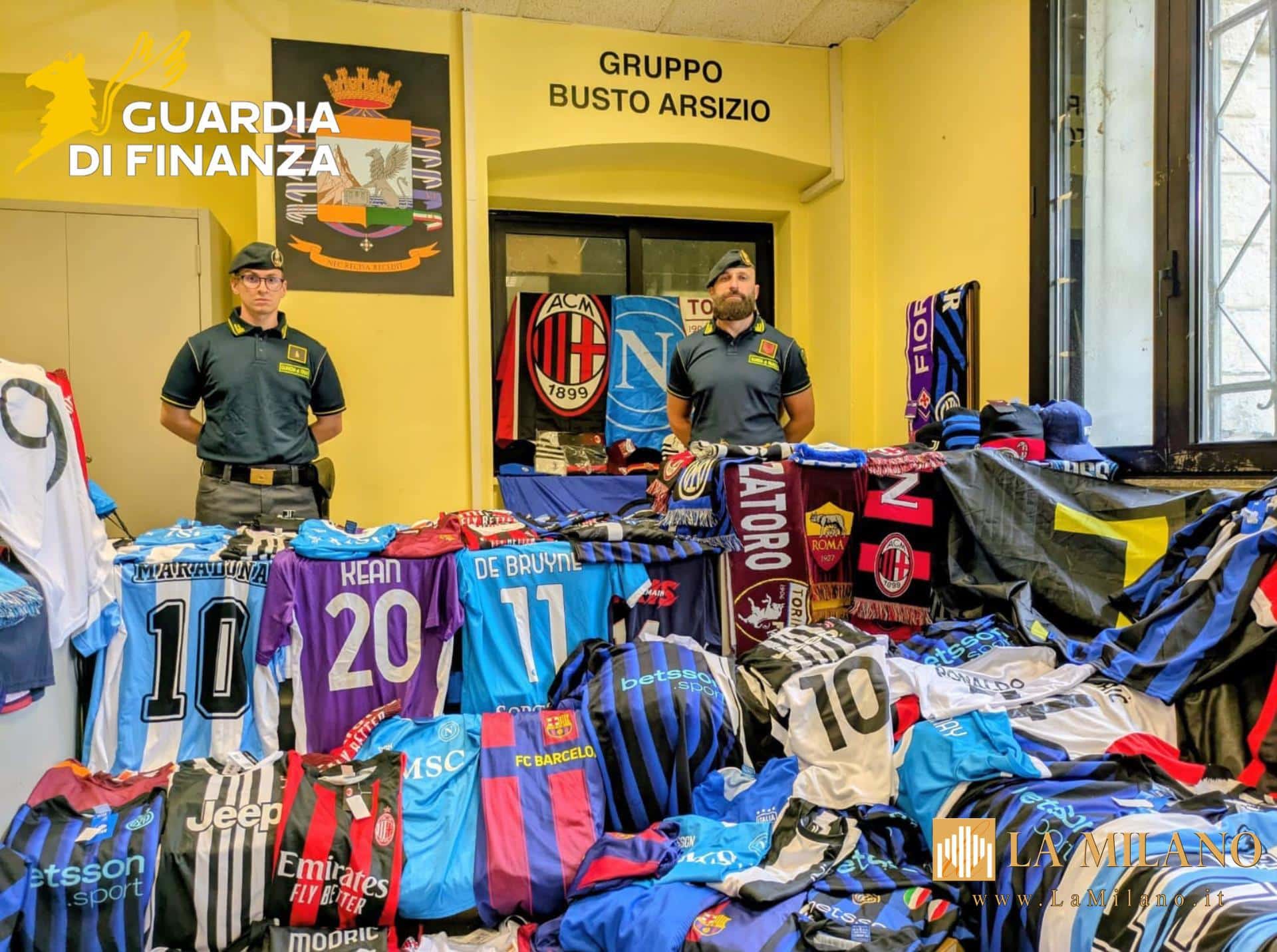 Maxi-sequestro della Guardia di Finanza a Busto Arsizio: oltre 800 capi di abbigliamento contraffatti delle grandi squadre di calcio, denunciato un ambulante.
