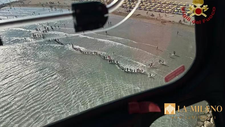 Alla macchina dei soccorsi si è unita una gara di solidarietà. Decine di turisti e residenti, accorsi dopo l’allarme, hanno formato una catena umana partendo dalla battigia e avanzando lentamente in mare per scandagliare ogni metro d’acqua.