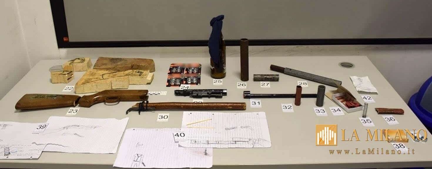 A seguito di tali evidenze, i poliziotti delle D.I.G.O.S. di Milano e Treviso hanno eseguito un decreto di perquisizione, nel corso della quale sono stati rinvenuti e sequestrati componenti pronti all’assemblaggio per la realizzazione di armi ed ordigni artigianali, oltre a fogli manoscritti con disegni di armi, parti d’armi e istruzioni per il confezionamento di munizioni artigianali. Elementi del tutto coerenti sono emersi anche dalla perquisizione informatica dei dispositivi in uso al giovane.