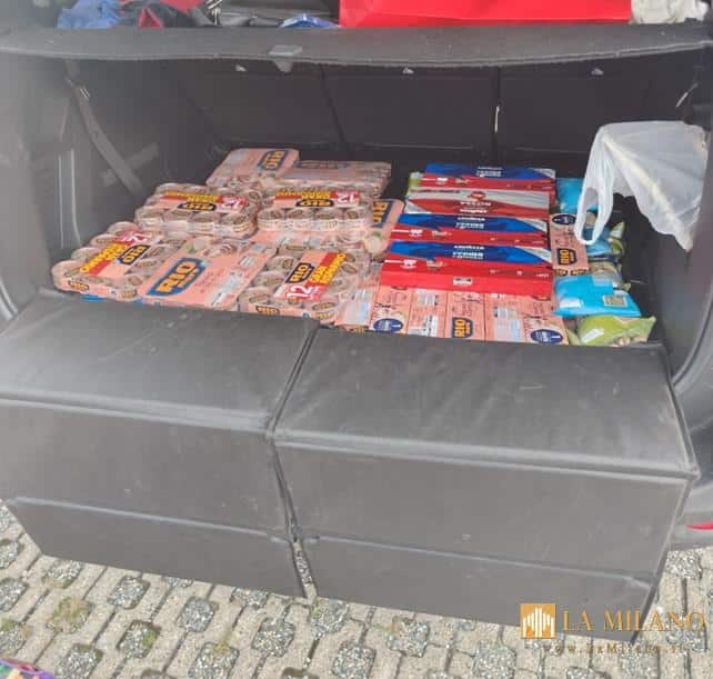Dalla perquisizione veicolare è emerso che all’interno della vettura era stivato un ingente quantitativo di merce di varia natura (cibo, alcolici, caffè, prodotti per la cura della persona), per un valore stimato in almeno 12.000 euro.