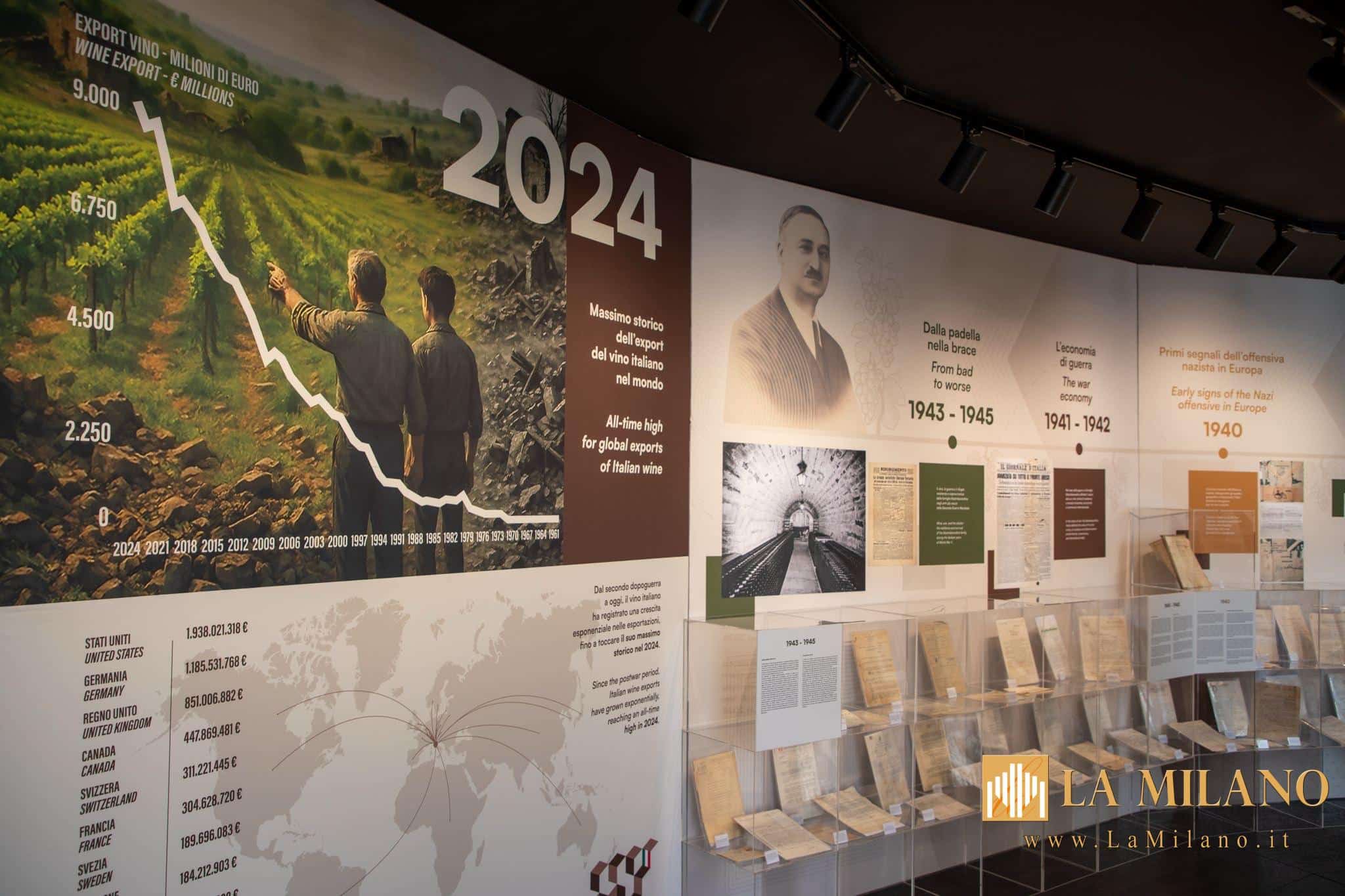 Il percorso accompagna i visitatori in un viaggio sensoriale che unisce passato, presente e futuro del vino italiano, raccontando le motivazioni che stanno alla base di questo successo.